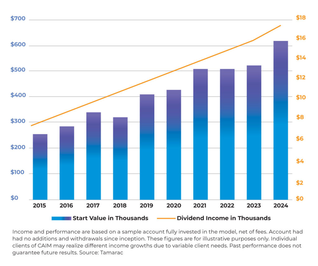 As their name suggests, dividend-paying stocks are stocks that pay you an income stream. It’s a great way to get paid now while waiting for your stocks, as a whole, to grow. All of this makes these stocks ideal for CAIM clients, women and those of retirement age, who want to maximize their investments and maintain a steady stream of income. Dividend paying stocks provide them with the necessary growth to keep up with inflation, as well as a cushion i.e. the quarterly dividend-payment, which helps your portfolio grow even when stocks are out of favor.